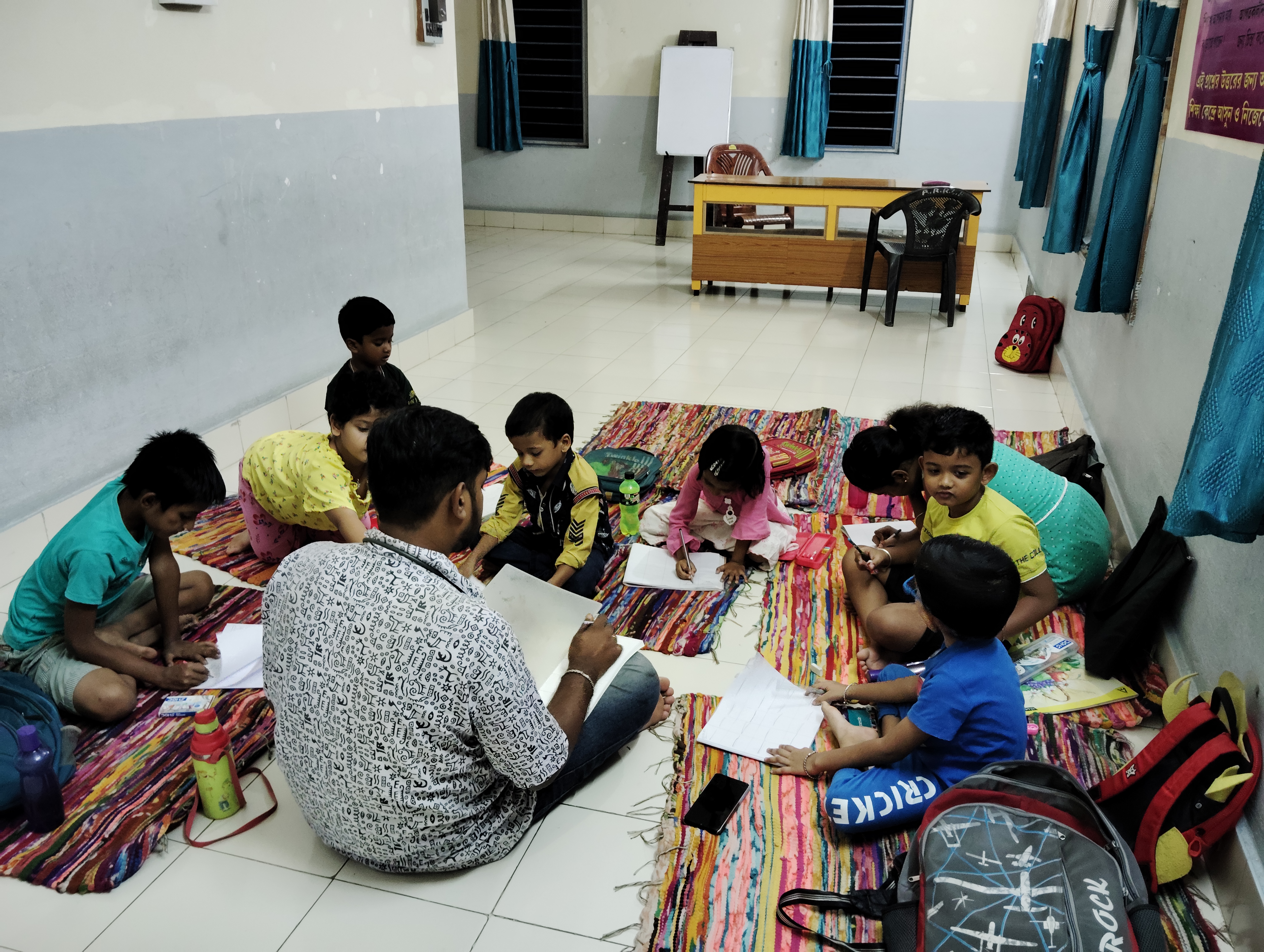 Setting up a school named TINY LEAVES. Besides regular curriculum, Computer training, Drawing, Dancing and skill of Self Defence are being taught to the children. Apart from the school children, other children from the villages are also being trained.